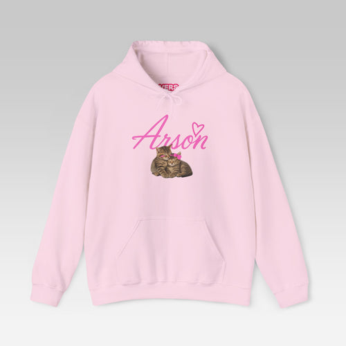The Arson Hoodie | Pink Streetwear Pullover with Cute Cats & Ironic Dark Humor Design