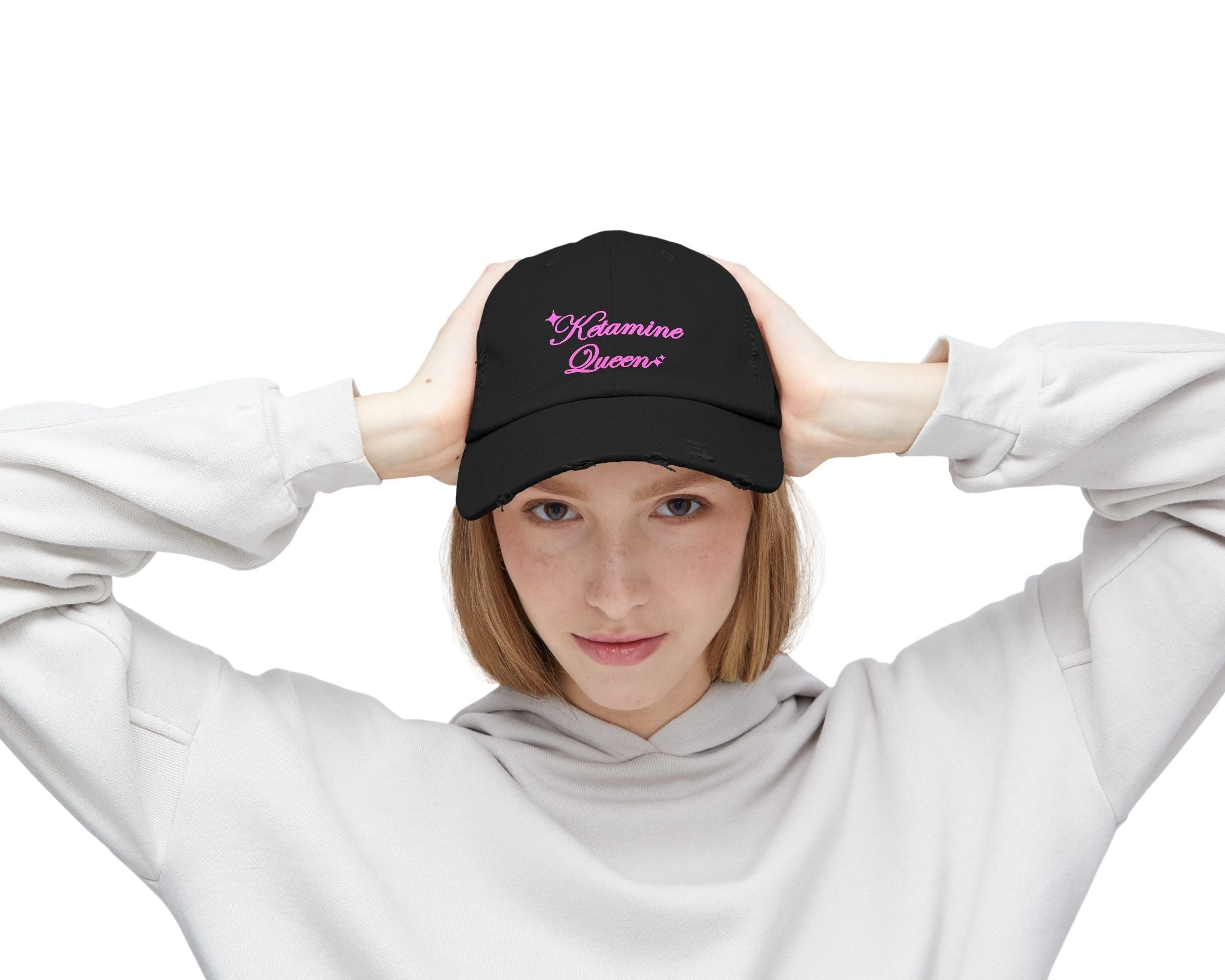 Ketamine Queen Cap | Distressed Black Streetwear Hat for Ironic Fashion & Dark Humor